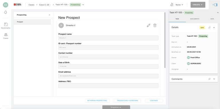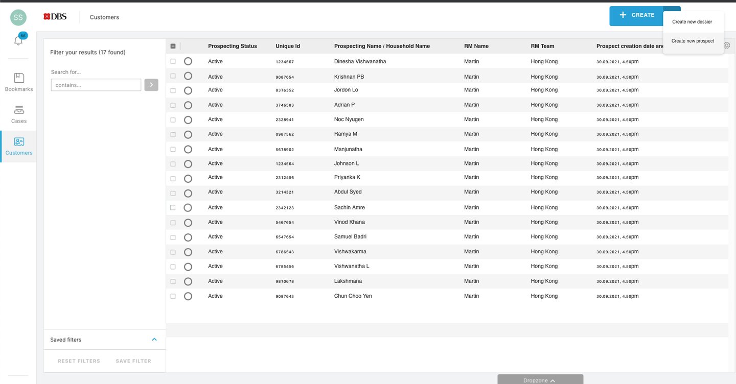 Led UX redesign of a DBS client bank's customer 360, Prospect Management portal AML and KYC Screening with confidence to reduce agent task time and approval errors. Outcome: Approval task time ↓ ~30%; projected throughput gains ~25% in pilot.